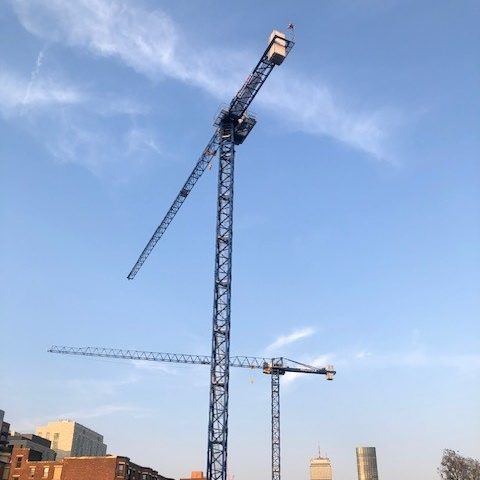 Three Linden Comansa LC132's being erected for Erland Construction at Tufts.